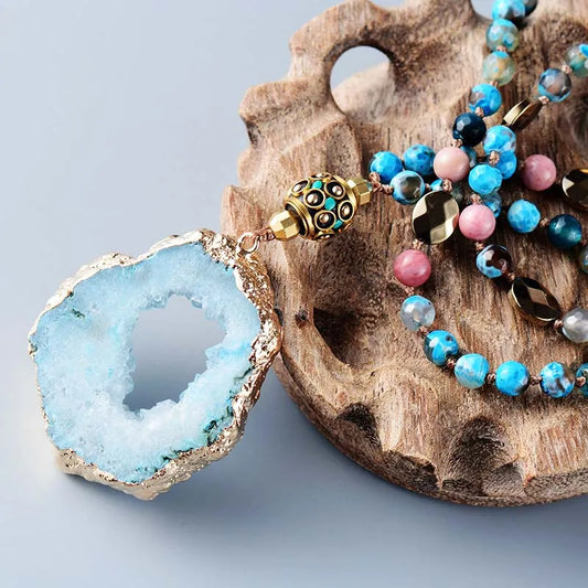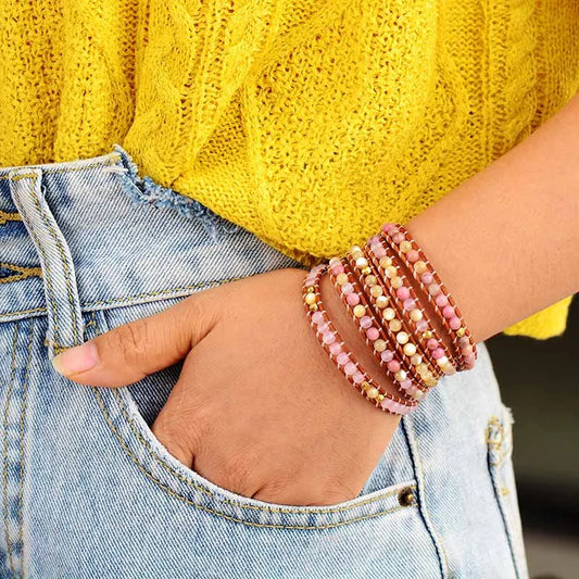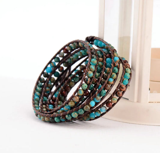 Natural Stone Leather Wrap Bracelet - Semi Precious Stones